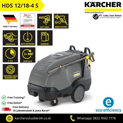 HDS 12/18-4 S adalah mesin entry-level dalam kelas Super pembersih air panas bertekanan tinggi Kärcher, yang ditandai dengan laju aliran air yang tinggi sehingga dapat dioperasikan bahkan dengan selang semprot kedua. Pistol pemicu EASY!Force HD memanfaatkan gaya rekoil dari jet bertekanan tinggi, sehingga mengurangi gaya penahan bagi operator hingga nol. Pembersih bertekanan tinggi ini intuitif untuk dioperasikan dan diangkut, dan berkat mode eco!efficiency, rekayasa pembakar yang dioptimalkan, dan dosis bahan pembersih yang presisi, alat ini sangat efisien serta ramah lingkungan.